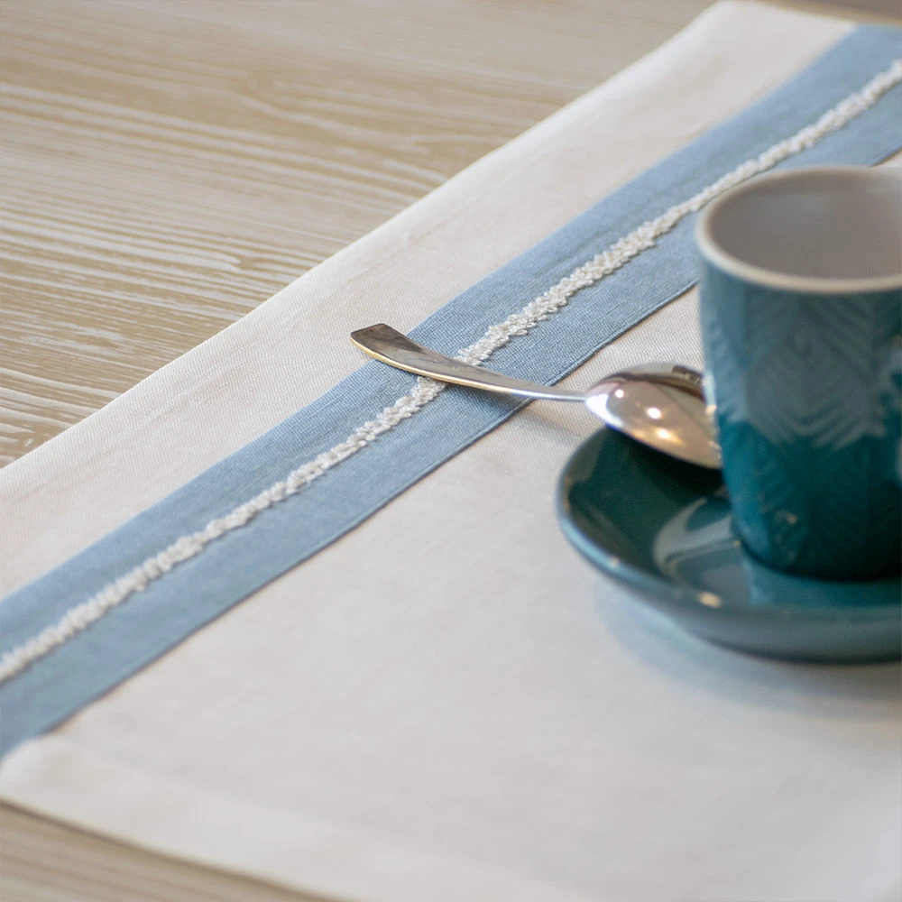 Découvrez le raffinement du Set de table Clori, confectionné en 100 % lin pur pour sublimer votre table avec une touche d’élégance intemporelle. Son design sophistiqué est mis en valeur par la précieuse finition en point de gazon, qui apporte un détail artisanal raffiné, tandis que le bord coloré ajoute une note de style et de personnalité.