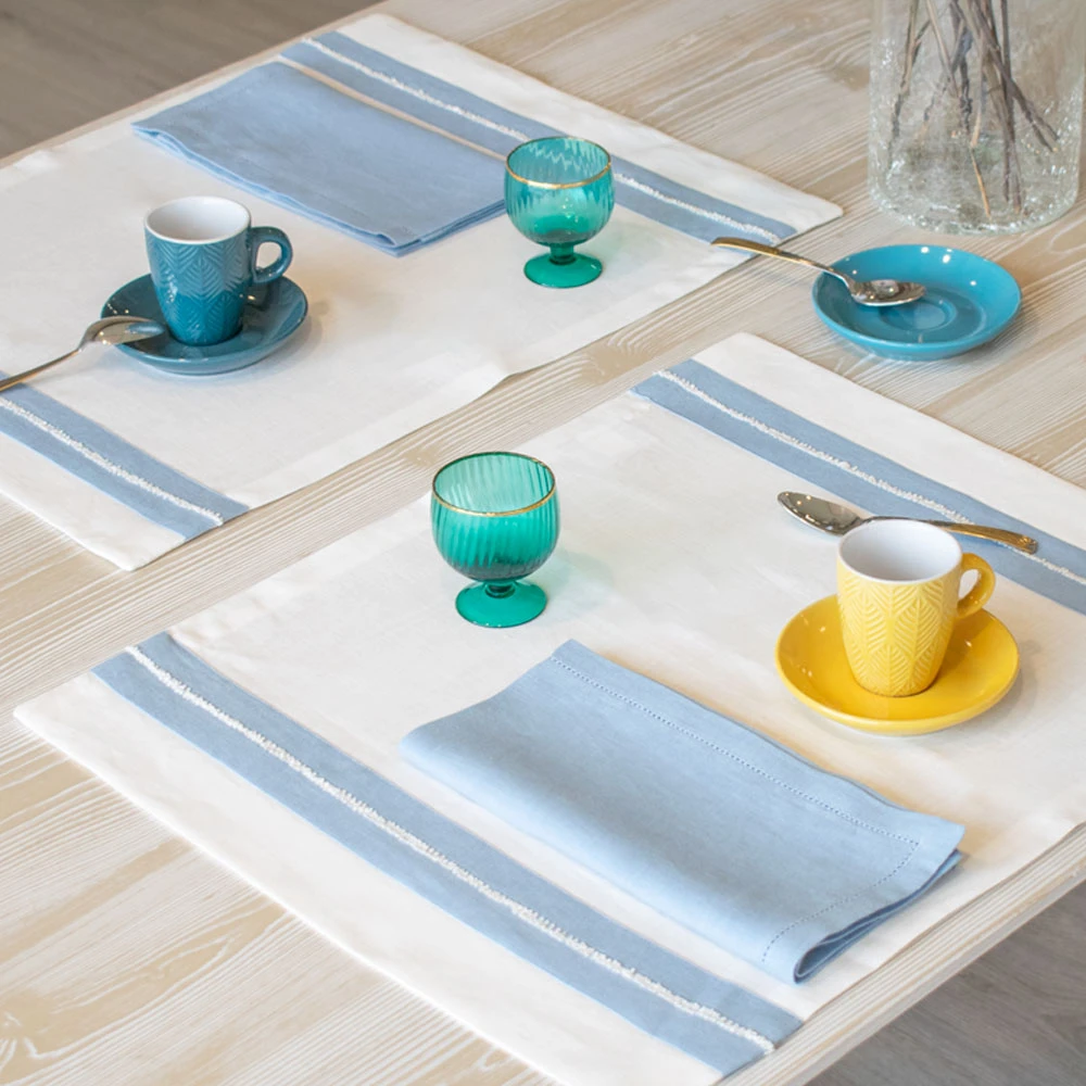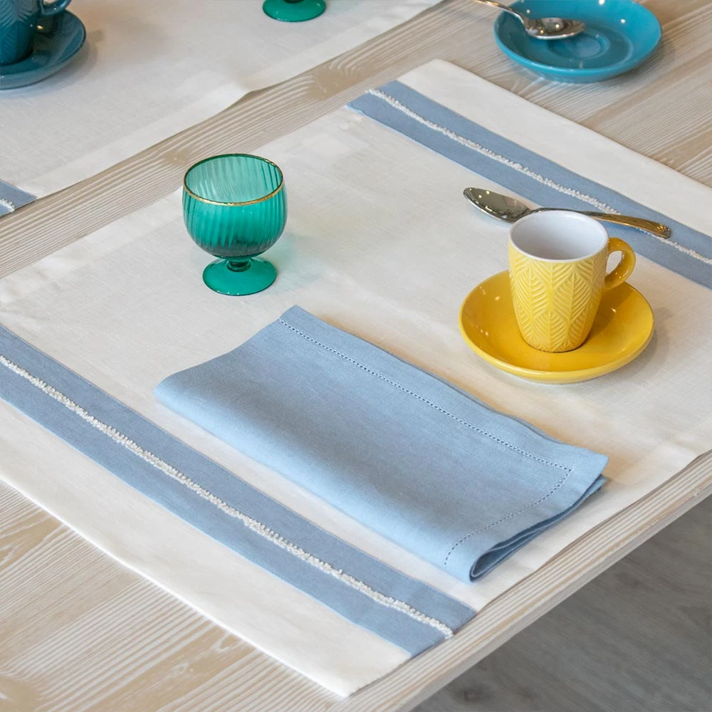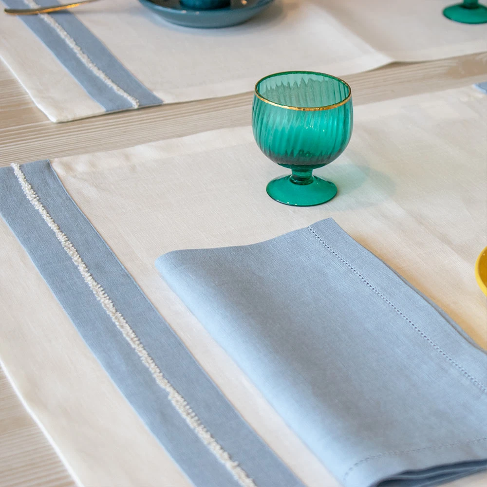 Sets de table - Pur Lin Clori - Élégance avec Bord Coloré et Finition Point de Tige