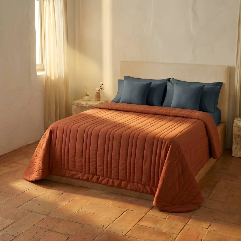 Profitez de la Fraîcheur et de la Douceur intemporelles de ce tissu à la finition mate, respirant et régulateur naturel de température.