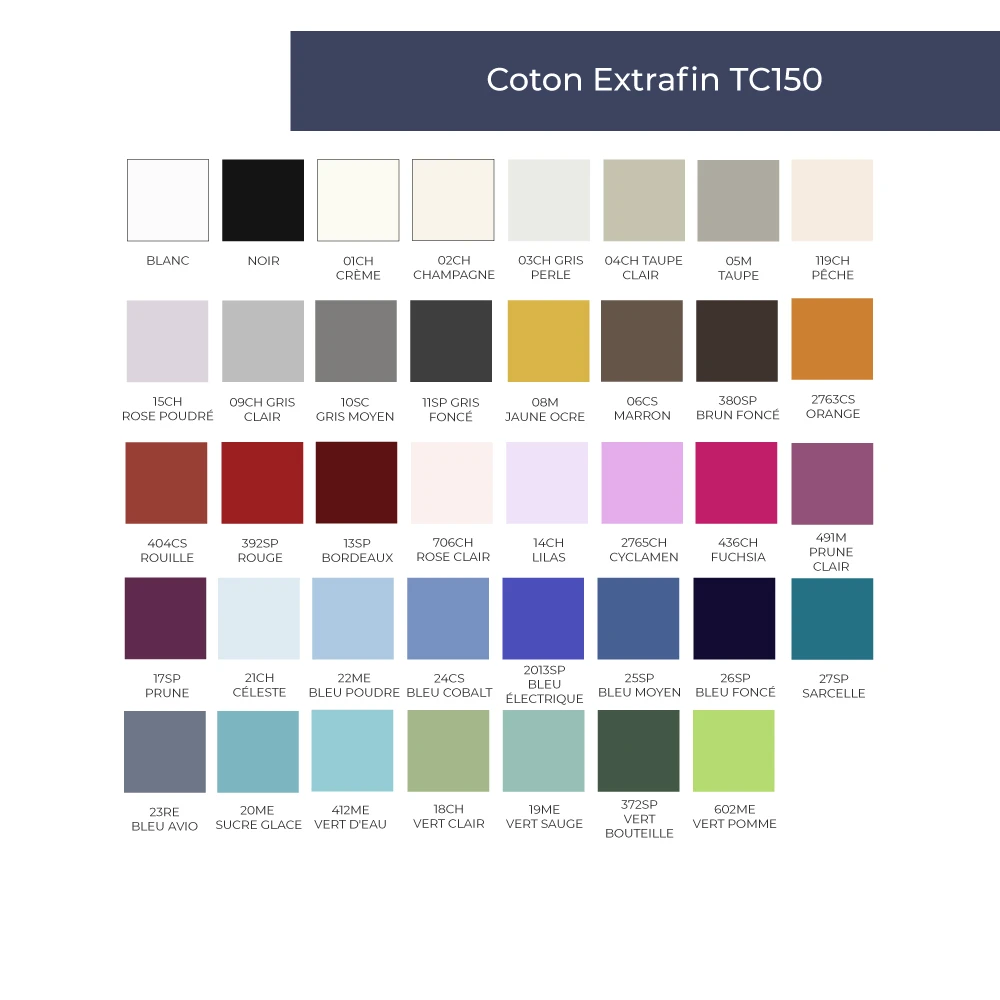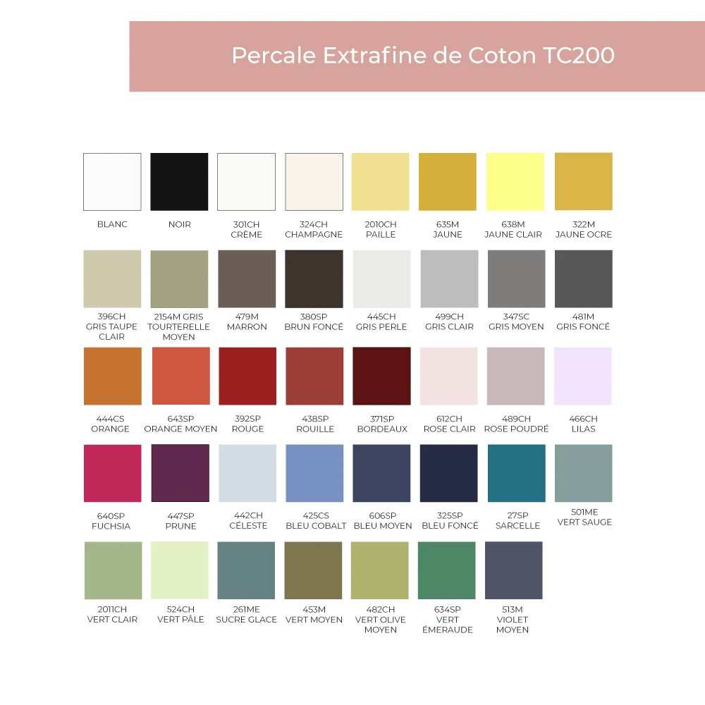 L'abréviation "TC" vient de l'anglais "Thread Count", littéralement "Nombre de fils". L'abréviation indique donc le nombre de fils par centimètre carré que le tissu a, donc plus ce nombre est élevé, plus la qualité du tissu que vous choisissez sera élevée.