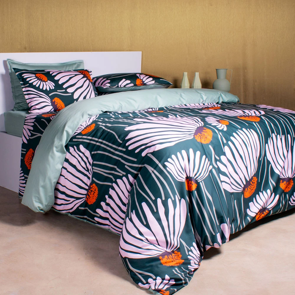 Renouvelez votre chambre avec le linge de lit Kimbe, inspiré des fleurs typiques de l’Afrique. Cette collection arbore un élégant design floral, enrichi de maxi imprimés qui apportent la beauté de la nature directement dans votre espace.