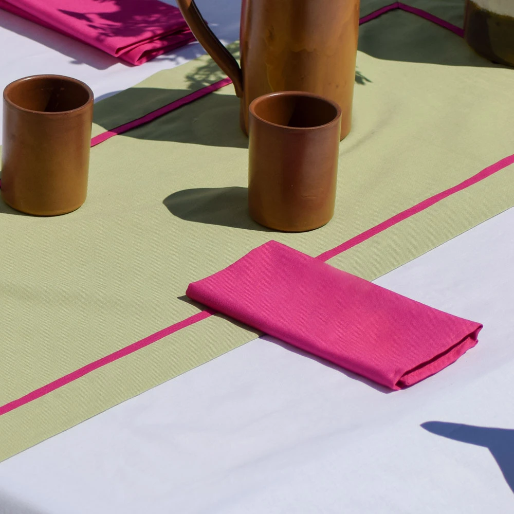 Améliorez l'apparence de votre salle à manger en coordonnant vos serviettes de style moderne en couleur unie à votre nappe.