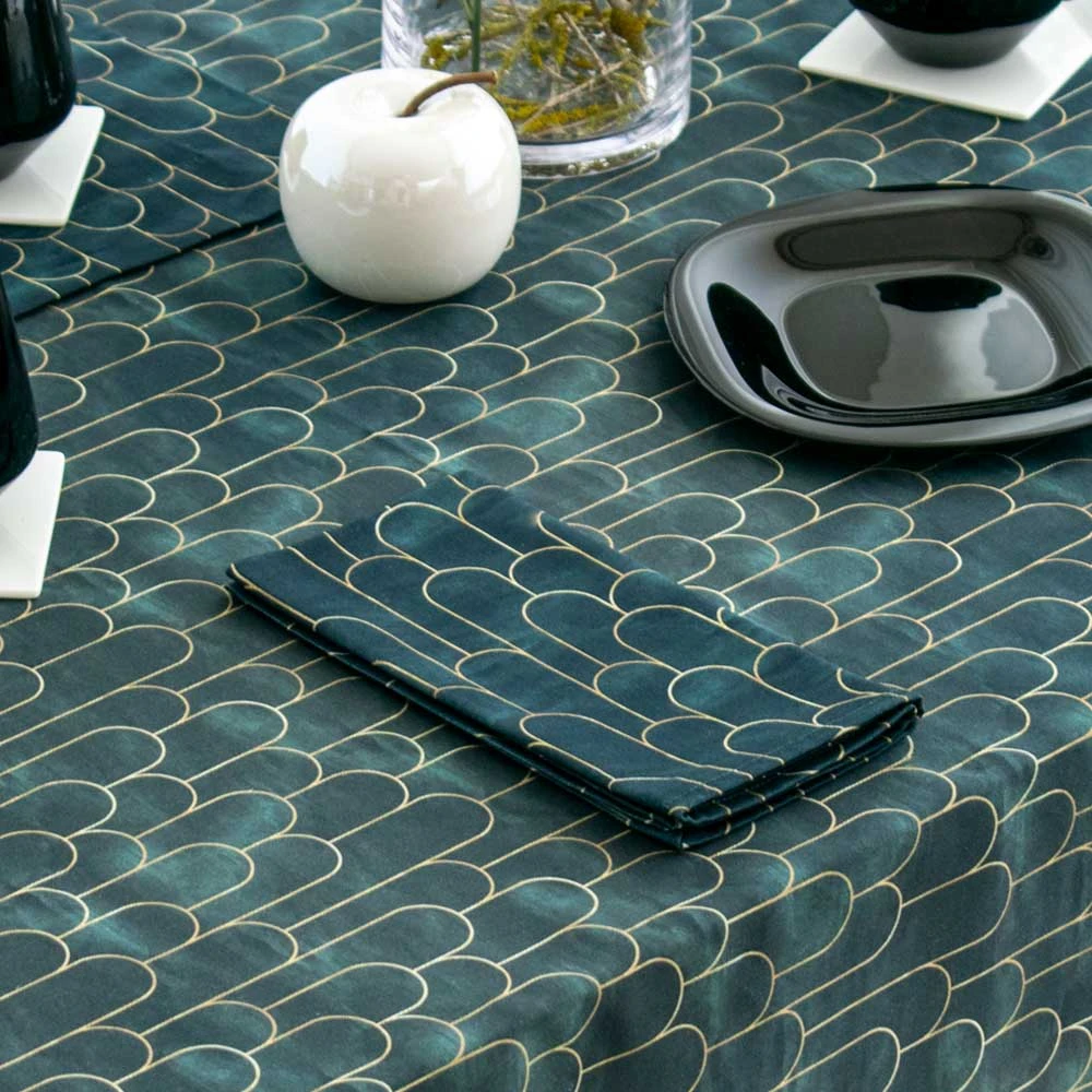 Fabriquée avec soin artisanal, cette nappe est disponible dans une palette raffinée de trois couleurs : Pétrole, Bleu de Prusse et Bordeaux. Ces tons profonds et enveloppants confèrent à votre table une atmosphère accueillante et sophistiquée, créant le cadre idéal pour des dîners romantiques, des réunions familiales ou des rencontres entre amis.