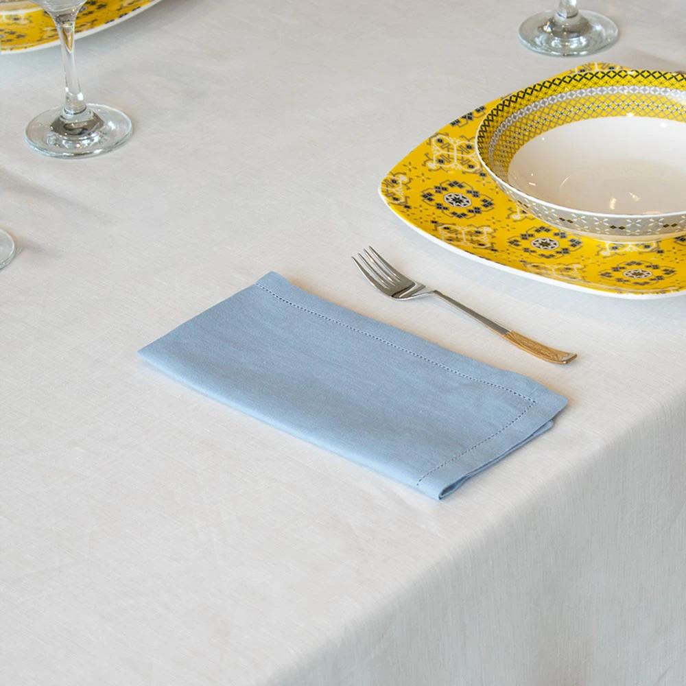 Découvrez le raffinement de la ligne de table Clori, fabriquée sur mesure en 100 % lin pur pour sublimer votre table avec une touche d'élégance intemporelle.