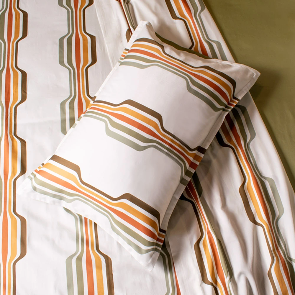 Transformez votre chambre à coucher en un refuge vibrant avec notre ensemble de linge de lit Morelia, inspiré par les couleurs chaudes et les géométries des années 70. Cette collection extraordinaire présente une combinaison unique de riches tons terreux, de verts doux et de lignes audacieuses, créant une esthétique à la fois nostalgique et contemporaine.